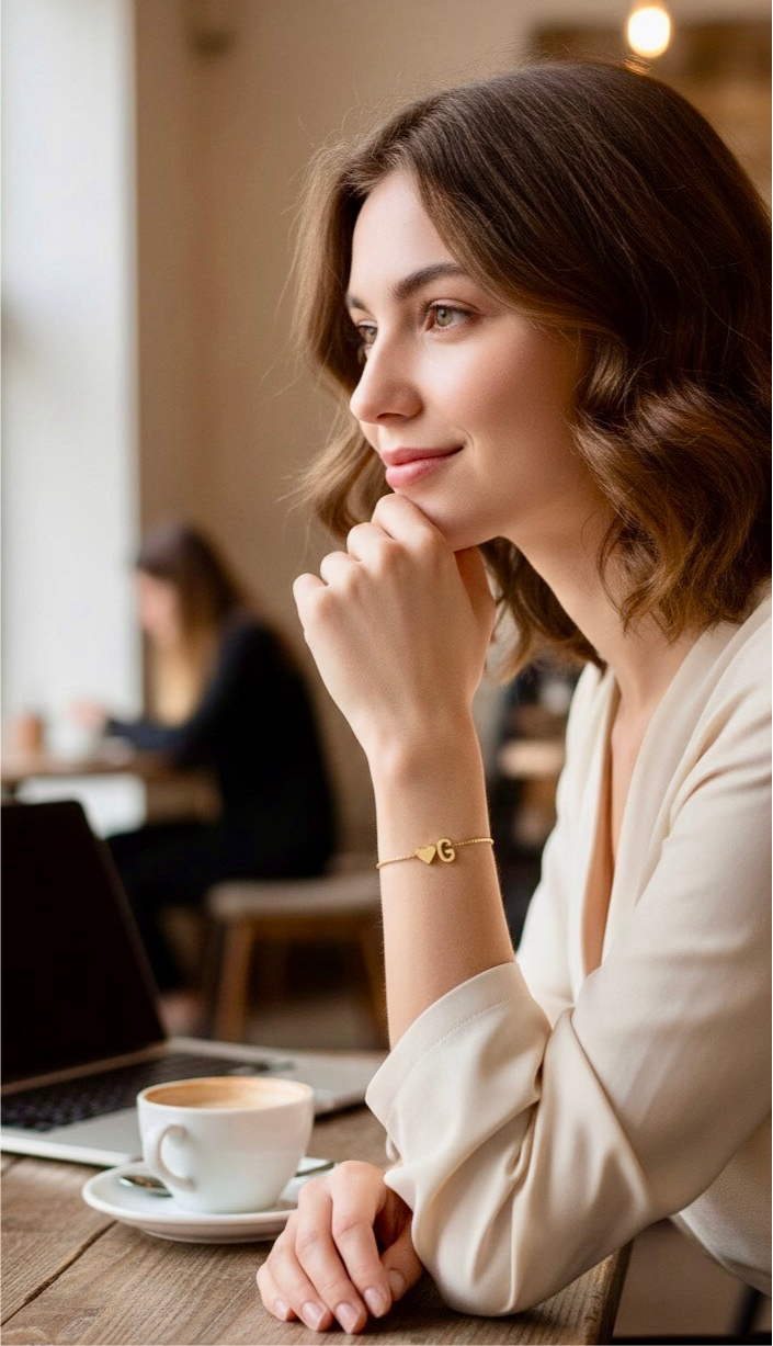Featuring a minimalist initial paired with a subtle heart charm, this bracelet adds a personal and meaningful touch to your look without excess.